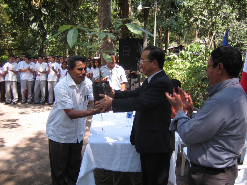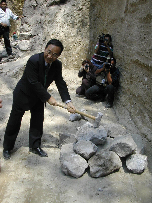 El Embajador de Japón, Dr. Akio Hosono, colocó la primera piedra para la recuperación del puente peatonal de la Colonia Guadalupe, en el municipio de Soyapango, dañado durante la Tormenta Tropical Stan que abatió a los salvadoreños en el año 2005.